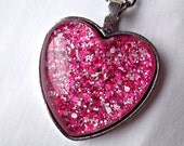 This necklace that has a heart with pink glitter inside it and my real gold bracelet that has my name on it (had it since I was little)